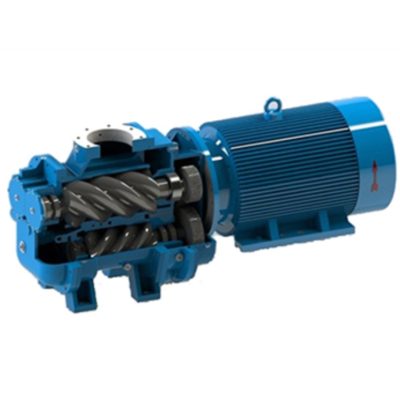 Hai trục vít quay ngược chiều, nén khí trong môi trường dầu
