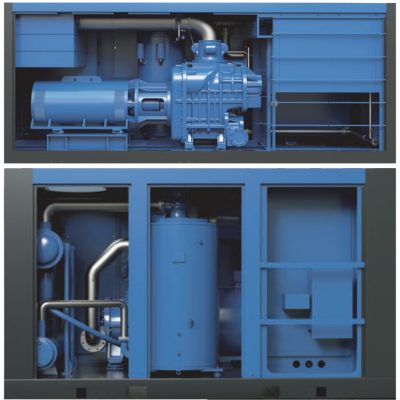 - Hệ thống tách dầu và khí: Lõi tách dầu và khí hiệu quả được thiết kế theo tiêu chuẩn Châu Âu. Vật liệu lọc sợi thủy tinh, hiệu quả hơn và không cần thay thế thường xuyên. Sự kết hợp giữa lõi tách và thiết bị hồi dầu phối hợp với nhau giúp nâng cao tốc độ thu hồi cao của chu trình dầu bôi trơn, tránh hiện tượng bay dầu và đảm bảo hàm lượng dầu trong khí thải máy ≤2ppm.