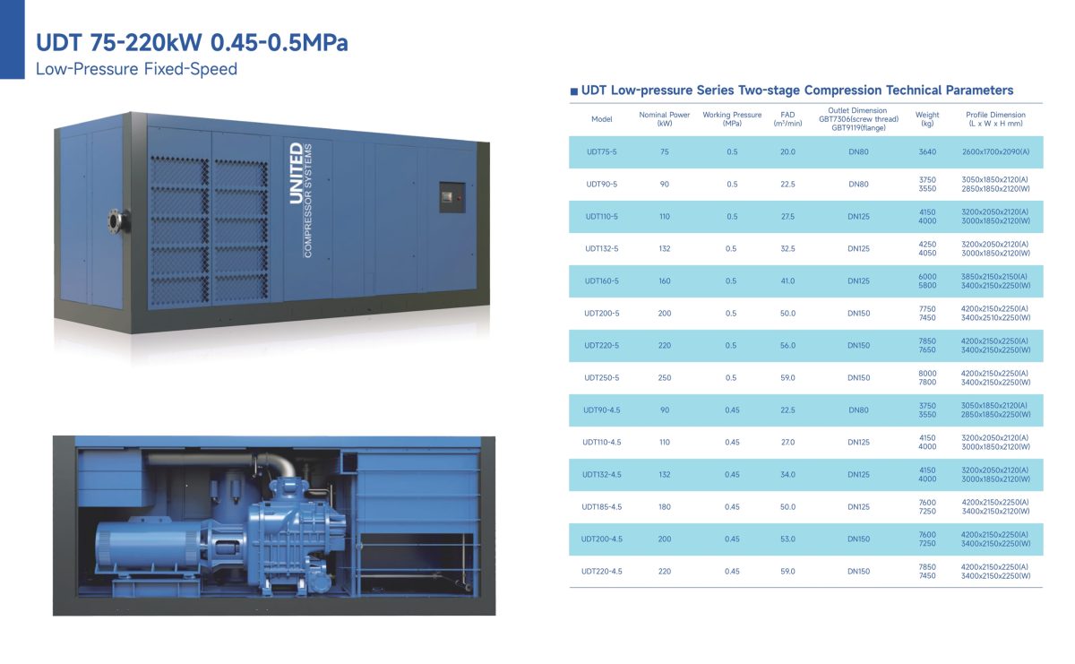 Các sản phẩm được thiết kế hướng tới việc tiết kiệm năng lượng và thân thiện với môi trường. United OSD bao gồm một loạt từ máy nén một cấp nén đến máy nén hai cấp nén, máy nén áp suất thấp, áp suất cao và nhiều loại đặc thù khác,…. Dùng cho tất cả ứng dụng công nghiệp từ phổ thông hay nhu cầu đặc biệt như khoan hầm bảo vệ, khoan đá, hoặc ngành dược phẩm, United OSD đều cung cấp các giải pháp toàn diện.